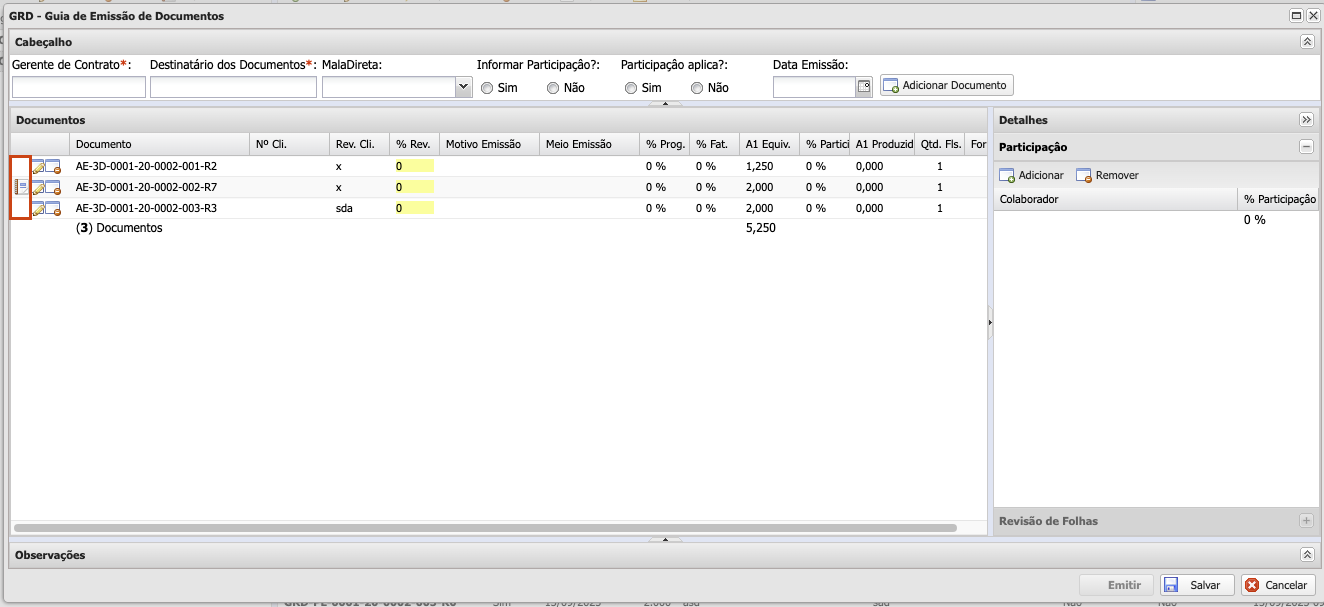 - No momento da emissão de um documento na GRD, o usuário de planejamento terá disponível o ícone de download da cópia de verificação, quando existente.